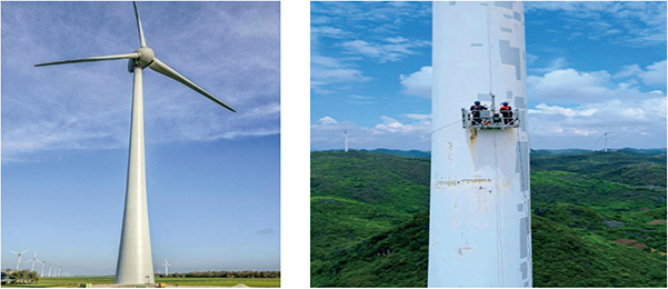 风力发电机塔筒表面修复机器人,依托专用吸附磁极阵列构建的高强度磁吸附系统,融合机器人本体轻量化设计以及壁面曲率自适应悬挂设计,实现机器人在塔筒外壁自由攀附移动,配合机械臂搭载独特设计的检测、打磨、喷涂三合一修复作业模块,自主完成塔筒表面锈蚀、涂层破损区域的智能识别、自适应转速打磨与多层漆面精准喷涂工艺作业,支持多角度灵活作业,高效解决人工难以触及区域的打磨喷涂痛点。